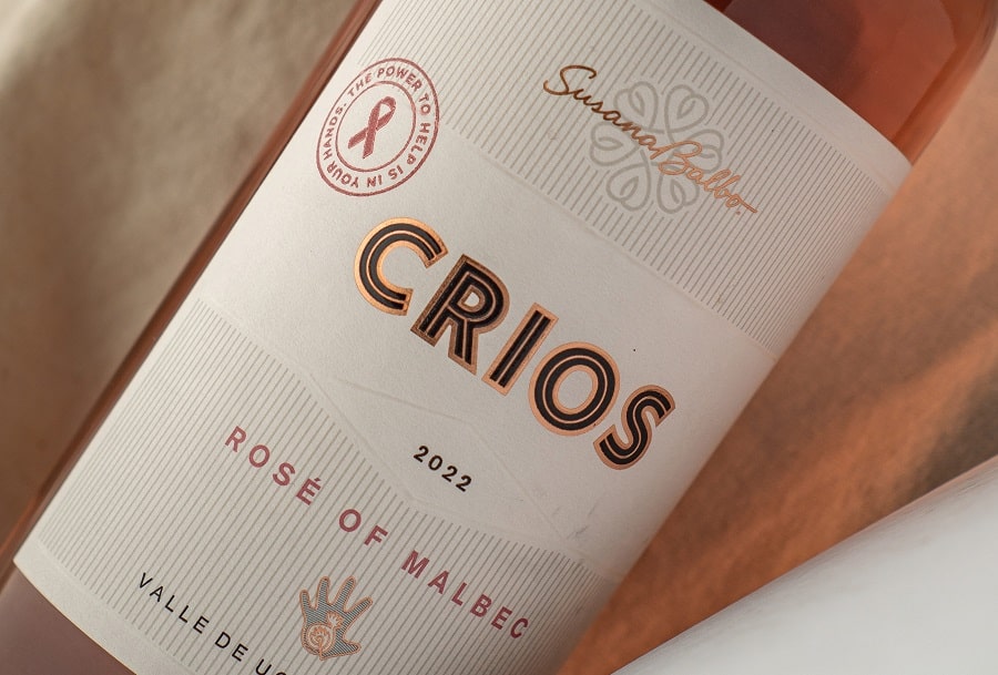 CRIOS Rosé de Malbec 2022 tiene un precio sugerido de $1.649 en vinotecas y en la tienda online de Susana Balbo.