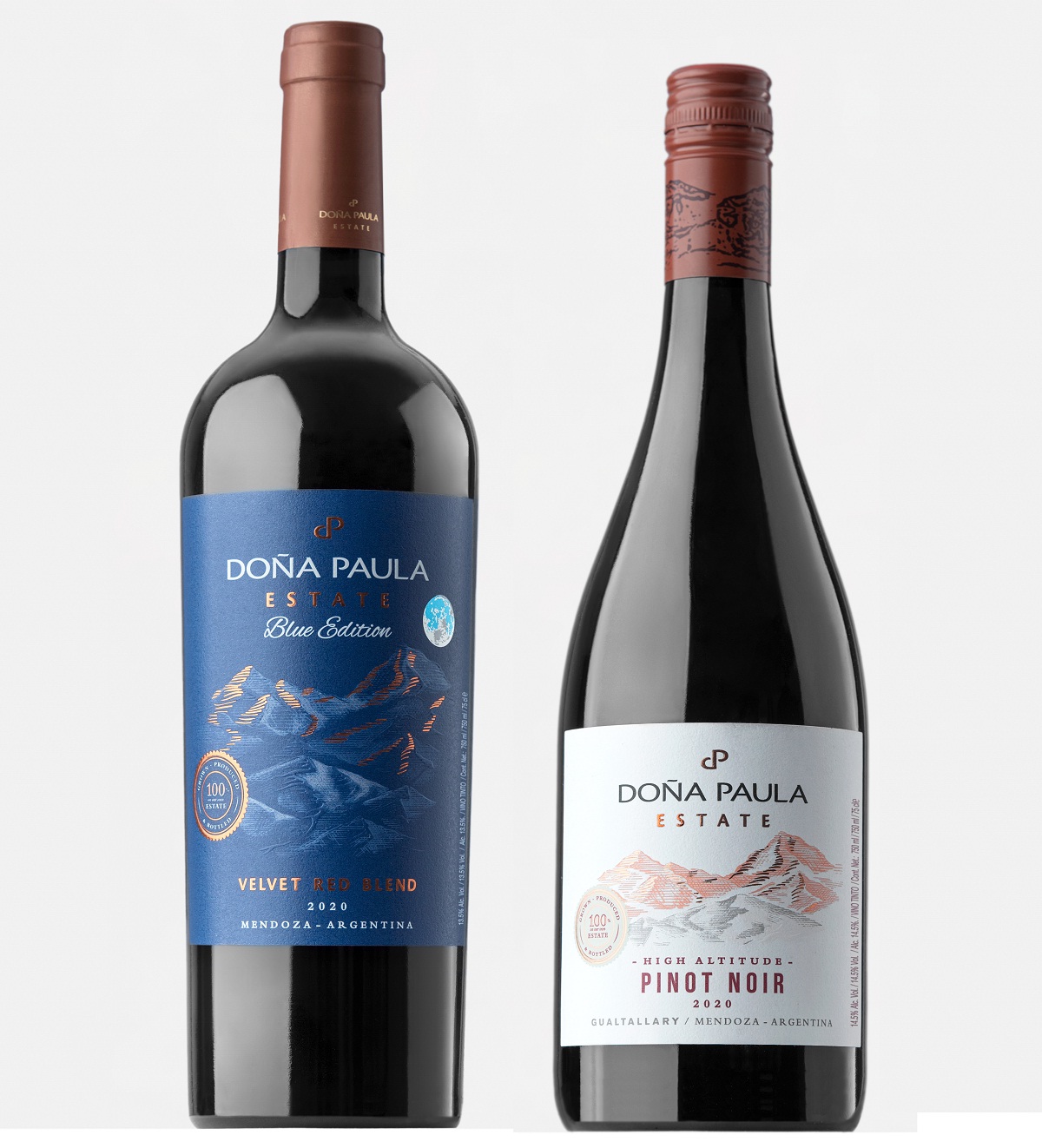 Doña Paula Estate Blue Edition 2020: Se trata de un novedoso assemblage elaborado a partir de uvas 60% Malbec -30% Pinot Noir -10% Bonarda que provienen de viñedos propios ubicados en Finca El Alto, Ugarteche, Luján de Cuyo.