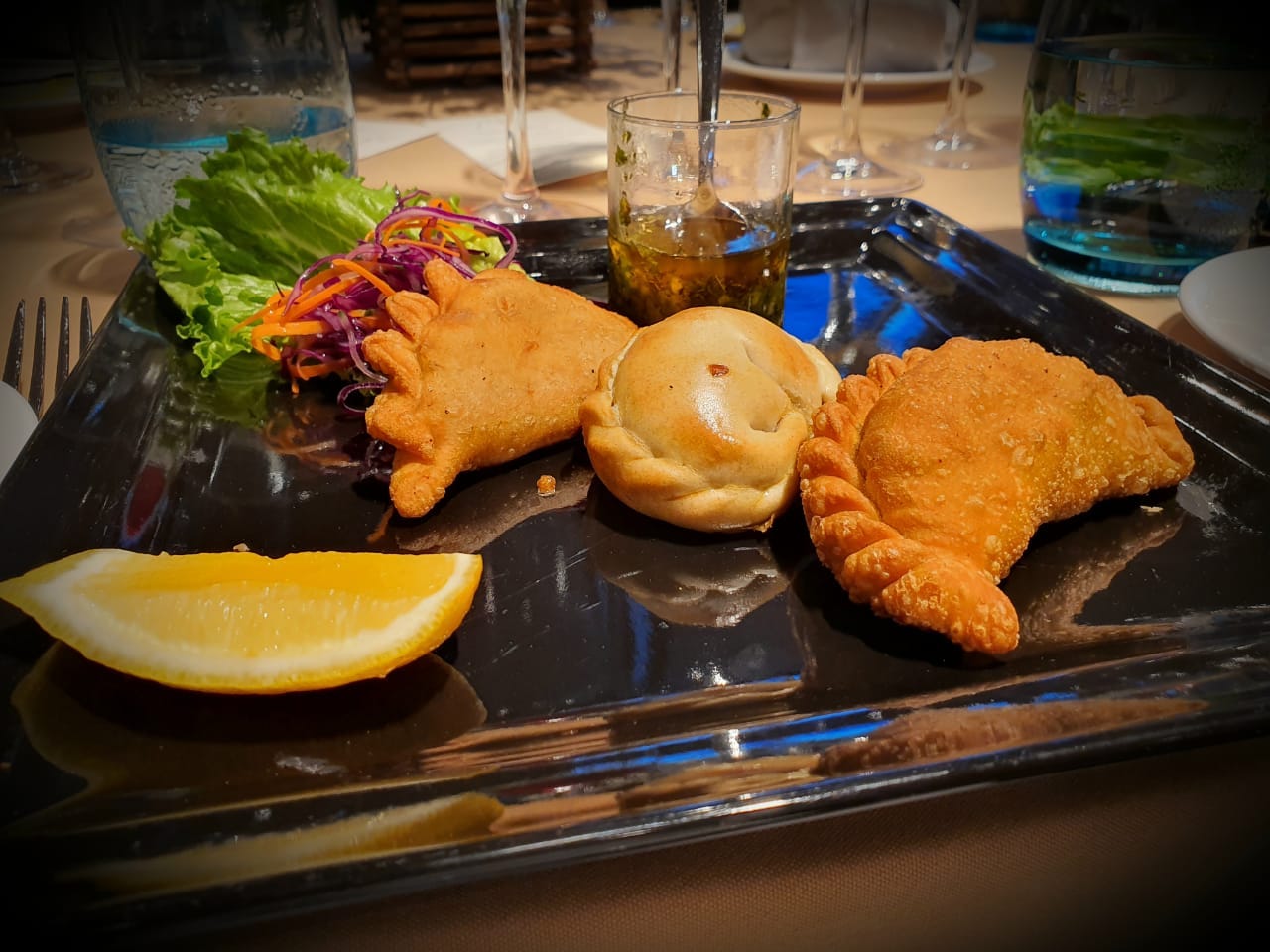 - Empanadas Argentinas con un toque local: empanadas de carne cortada a cuchillo, de humita y de camarones.