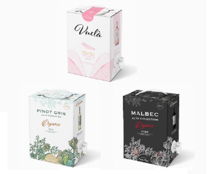 La línea elegida de vinos para el Bag in Box ha sido especialmente seleccionada por la bodega y se trata de Alta Colección y Vuelá, dos líneas de alta gama elaboradas con uvas provenientes de la finca orgánica de la prestigiosa zona de Los Chacayes, en donde la bodega propone a aquellos consumidores que les gusta disfrutar de un vino Premium, de alta calidad y orgánico, la posibilidad de tomar una copa de estos vinos en óptimas condiciones todos los días y desde un solo envase que tiene una durabilidad de 60 días.