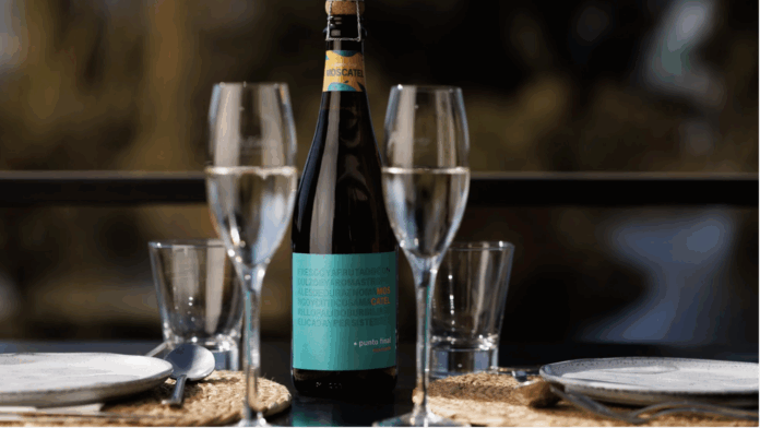 Elaborado a partir de uvas Moscatel mediante el método tipo Asti —que interrumpe la