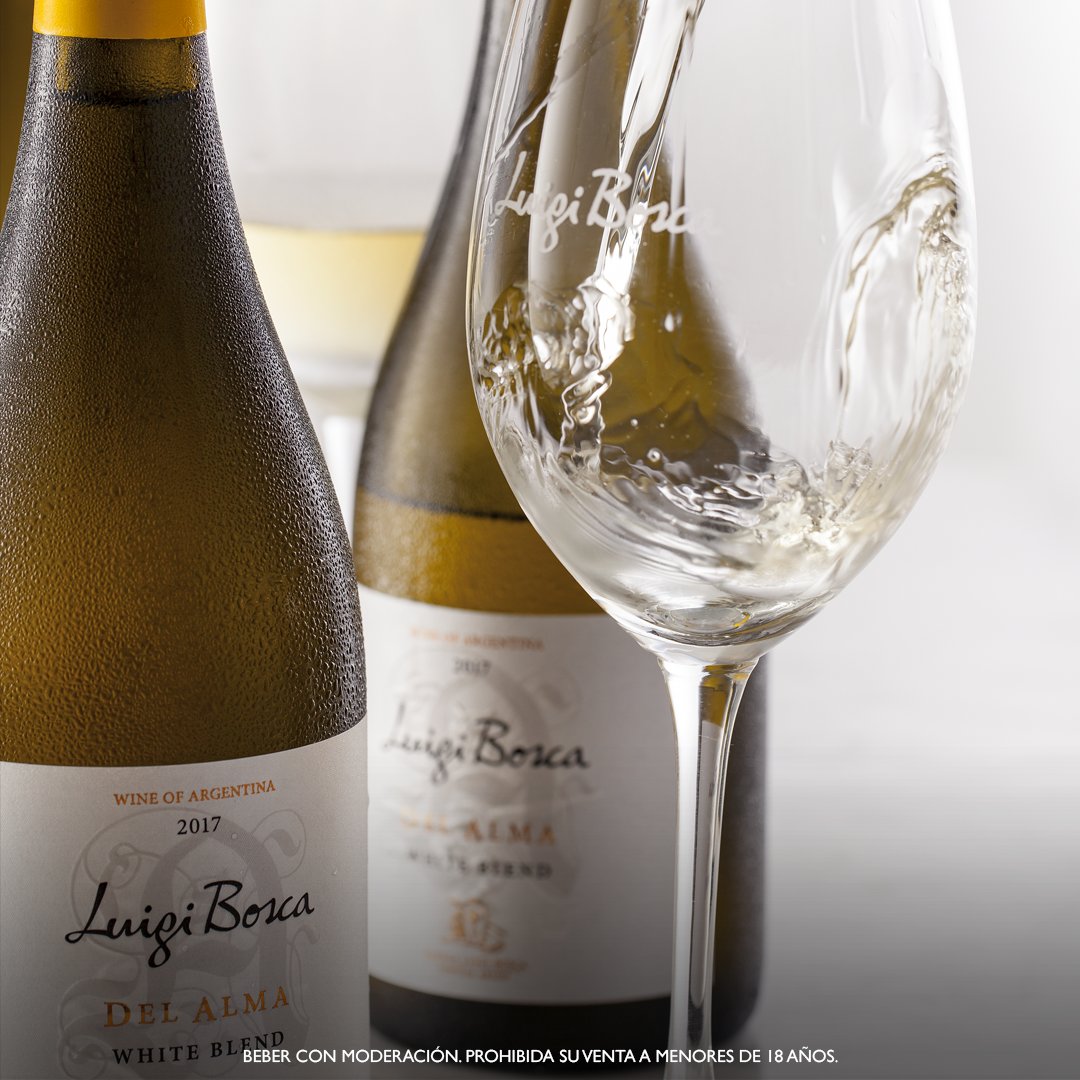 Luigi Bosca • Del Alma: un White Blend de alta gama que cobra vida como partenaire del Luigi Bosca De Sangre en su representación del espíritu de los Arizu en “cuerpo” y “alma”. Elaborado a partir de Chardonnay, Sauvignon Blanc, Pinot Gris, Riesling y Viognier, pertenecientes a viñedos propios situados en Maipú y Luján de Cuyo, muestra aromas equilibrados y expresivos, con notas de frutas blancas y cítricas. En boca es refrescante, franco y voluptuoso, con texturas vibrantes y un carácter frutal bien definido. Maridaje sugerido: carnes blancas, mollejas, vegetales de estación, queso de cabra y salsas picantes y especiadas.
