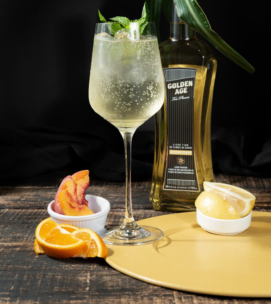 Inspirado en el clásico Spritz, el “Torrente Vendimial” le da protagonismo a una de las uvas blancas insignia de Argentina: Torrontés. Aromática, floral y con marcada identidad regional, encuentra aquí un maridaje natural con el licor de flores de saúco y la frescura de la soda.
