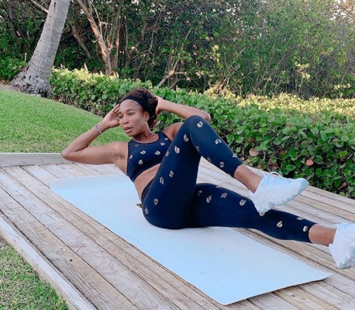 Williams ha comenzado un breve entrenamiento diario en vivo que publica en su estado de Instagram. La estrella del tenis mundial hace sentadillas, saltos, y alienta a sus espectadores a unirse a sus rutinas. Incluso avisa que si no tienes pesas en casa, no debes hacerte problemas, porque también se puede utilizar botellas de agua y champán como pesas.
